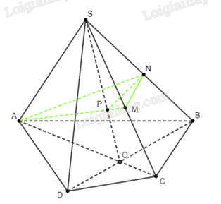 Gọi \(P\) là hình chiếu của \(A\) trên \(SO\). Trên \(\left( {SAC} \right)\), gọi \(M\) là giao điểm của \(SC\) và \(AP\). Trên \(\left( {SBD} \right)\), kẻ \(NP \bot SO\) với \(N \in SB\).