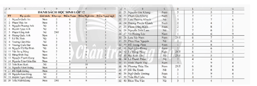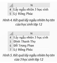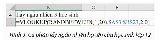 Yêu cầu: Lấy ngẫu nhiên họ tên của 3 học sinh trong danh sách 20 học sinh lớp 12 (Bảng 1).
