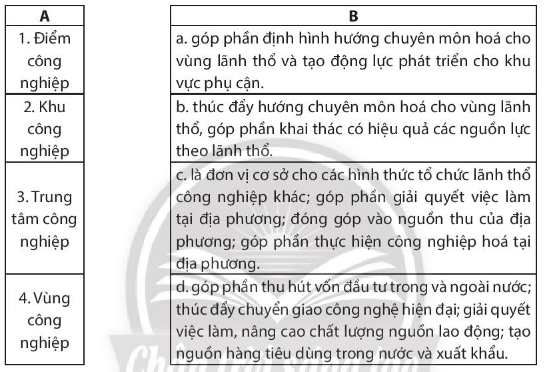 Vẽ mũi tên nối các ô dưới đây sao cho phù hợp nhằm thể hiện quan niệm về tổ chức lãnh thổ công nghiệp