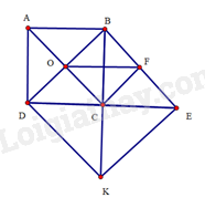 Cho hình vuông \(ABCD\) có hai đường chéo \(AC\) và \(BD\) cắt nhau tại \(O\). Trên tia đối của tia \(CB\) lấy điểm \(K\) sao cho \(BC = CK\).
