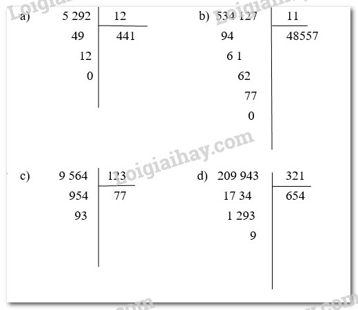 a) 5 292: 12 ; b) 534 127 : 11 ; c) 9 564 : 123 ; d) 209 943 : 321.