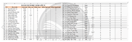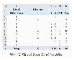 3a. Bảng tần số: Hiệu chỉnh các nội dung em được kết quả bảng tần số hai chiều (hình 12)