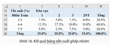 3. Thực hiện sao chép kết quả bảng tần số ghép nhóm (Hình 15) và định dạng dữ liệu để được kết quả như hình 16.