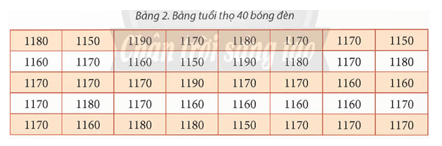 Thực hiện thống kê dữ liệu, lập bảng tần số và bảng tần suất. Dựa vào kết quả, em đưa ra nhận xét về tuổi thọ của các bóng đèn trên: