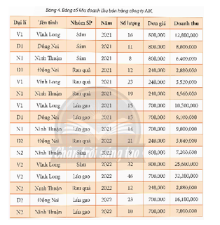 Cho bảng số liệu doanh thu bán hàng các đại lí công ty ABC như sau: