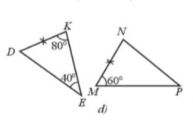 Suy ra \(\hat D = 180^\circ - \hat K - \hat E = 180^\circ - 80^\circ - 40^\circ = 60^\circ \)