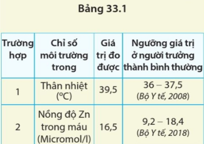 Nhớ lại giá trị thân nhiệt của người bình thường và giá trị của nồng độ Zn trong máu để đối chiếu