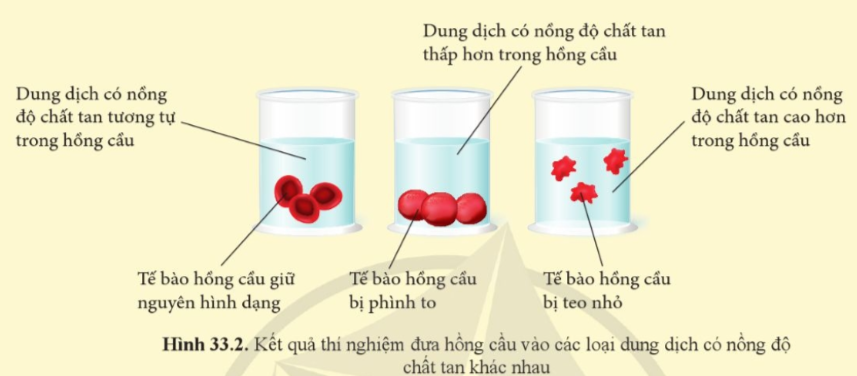 Trong dung dịch có nồng độ chất tan thấp hơn trong hồng cầu, tế bào hồng cầu bị phình to