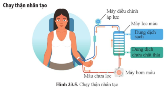 CH 6: Quan sát hình 33.5 và cho biết đường di chuyển của máu trong máy chạy thận nhân tạo. Theo em, bộ phận nào của thận nhân tạo thực hiện chức năng của thận trong cơ thể?