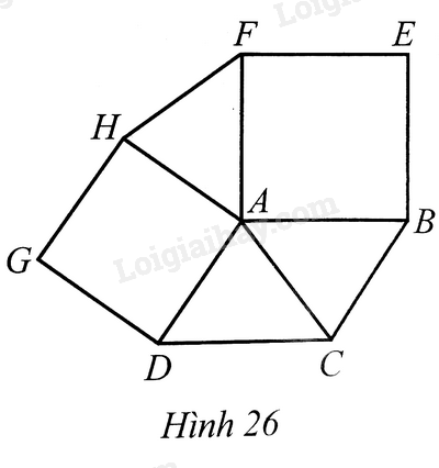Cho hình bình hành \(ABCD\). Ở phía ngoài hình bình hành, vẽ các hình vuông \(ABEF\) và \(ADGH\) (Hình 26). Chứng minh: