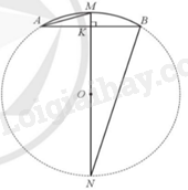 Bài toán được minh họa như hình trên. Kẻ đường kính MN của (O;R), suy ra \(O \in MN\).