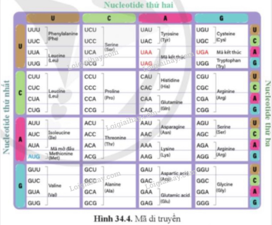 Quan sát hình 34.4, nêu ví dụ cho thấy nhiều bộ ba cùng mã hóa cho một amino acid