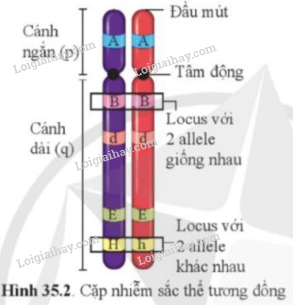 Quan sát hình 35.2, phân tích đặc điểm trên hình thể hiện đây là cặp NST tương đồng
