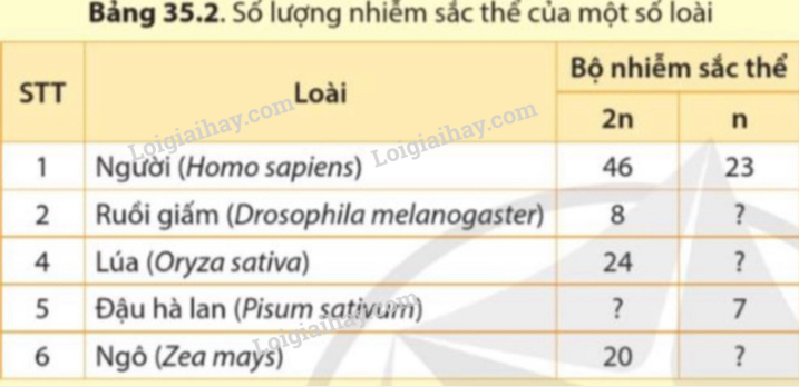 Quan sát bảng 35.1 và nhận xét về số lượng NST giới tính ở mỗi giới của một số loài.