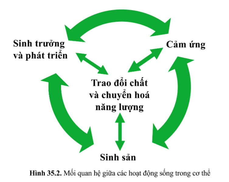 Câu hỏi 3 Quan sát hình 35.2 nêu mối quan hệ giữa các hoạt động sống trong cơ thể sinh vật.