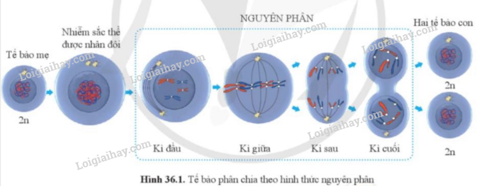 Quan sát hình 36.1, cho biết kết quả của quá trình phân chia tế bào theo hình thức nguyên phân