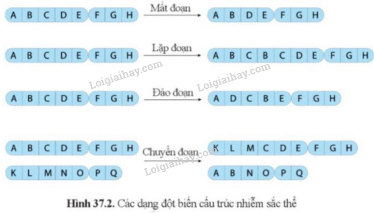 Quan sát hình 37.3, 37.4, nêu tên loại đột biến được thể hiện ở mỗi trường hợp trong hình 37.4.