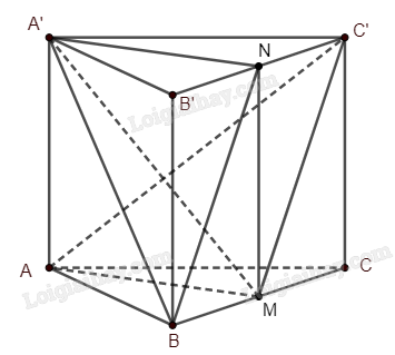 Mặt khác, vì \(M\) và \(N\) lần lượt là trung điểm của \(BC\) và \(B'C'\) nên \(MN\parallel BB'\) và \(MN = BB'\). Do \(ABC.A'B'C'\) là lăng trụ tam giác, nên \(BB'\parallel AA'\) và \(BB' = AA'\). Từ đó ta có \(MN = AA'\) và \(MN\parallel AA'\). Điều này có nghĩa tứ giác \(A'NMA\) là hình bình hành. Suy ra \(A'N\parallel AM\). Do \(AM \subset \left( {AC'M} \right)\) nên \(A'N\parallel \left( {AC'M} \right)\). Vậy \(\left( {A'BN} \right)\parallel \left( {AC'M} \right)\).