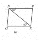 Mà hai tam giác trên có cạnh NR là cạnh chung và \(\widehat {PN{\rm{R}}} = \widehat {{\rm{QRN}}}\left( { = 40^\circ } \right)\).
