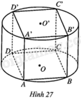 Cho hình lập phương ABCD.A’B’C’D’ có thể tích bằng 27a3. Hình trụ (T) có hai đáy là hai đường tròn (O), (O’) lần lượt ngoại tiếp hình vuông ABCD và hình vuông A’B’C’D’ (Hình 27). Tính diện tích toàn phần của hình trụ (T) theo a.