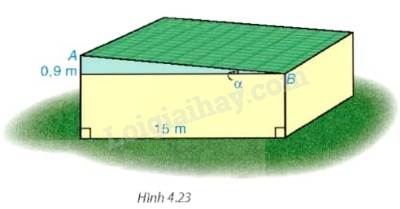 Tính góc nghiêng (alpha ) và chiều rộng AB của mái nhà kho trong Hình 4.23
