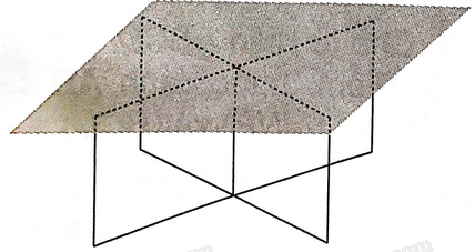 Tính chất hình học nào giải thích việc mặt bàn có thể được giữ cố định bởi khung sắt là: Một mặt phẳng được xác định khi nó chứa hai đường thẳng cắt nhau.
