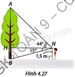 \(AH = NH.\tan HNA \approx 5,6.\tan {44^o} \approx 5,4\left( m \right)\).