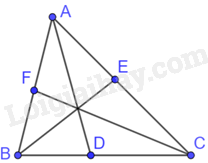 Do đó, \(\frac{{AE}}{{EC}}.\frac{{CD}}{{DB}}.\frac{{BF}}{{FA}} = \frac{{AB}}{{BC}}.\frac{{AC}}{{AB}}.\frac{{BC}}{{AC}} = 1\)