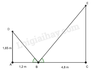 Ta có \(\tan \widehat {ABD} = \frac{{1,65}}{{1,2}} = \frac{{11}}{8}\) hay \(\tan \widehat {EBC} = \frac{{11}}{8}\) (do \(\widehat {ABC} = \widehat {DBC}\))