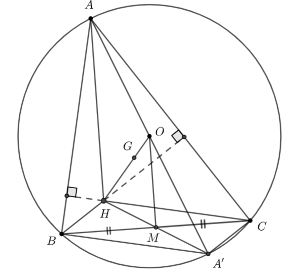 - Chứng minh \(MO\) là đường trung bình của \(\Delta AA'H\)