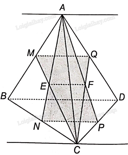 d) Theo chứng minh trên, các đường giao tuyến đều song song với MQ, NP, BD nên chúng song song với nhau.