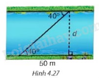 Tìm chiều rộng d của dòng sông trong Hình 4.27 (làm tròn đến m) .
