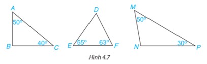 Trong các tam giác (H.4.7), tam giác nào là tam giác nhọn, tam giác tù?