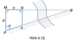 Cho A, B là hai địa điểm ở hai bên bờ sông, biết AN và PM cùng vuông góc MN, (MN = n) (mét), (MP = p) (mét), (p > n) và (widehat {MPA} = alpha ) (H.4.12). Chứng minh rằng: (AB = frac{{ptan alpha - n}}{{sin alpha }}).