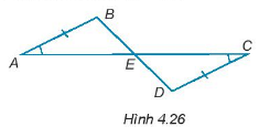 Cho các điểm A, B, C, D, E như Hình 4.26, biết rằng AB = CD, \(\widehat {BAE} = \widehat {DCE}\). Chứng minh rằng:
