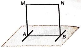 Gọi hai đầu của hai thanh sắt trên mặt đất A, B và hai đầu tương ứng còn lại là M, N thì AM//BN và \(AM = BN,\) suy ra ABNM là hình bình hành. Vì vậy MN//AB và do đó dây phơi (nối hai điểm M, N) song song với mặt đất (chứa đường thẳng AB).