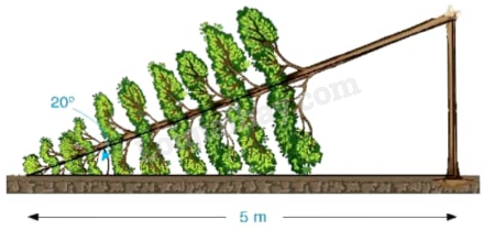 Độ dài của phần từ gốc cây đến điểm gãy là \(5.\tan {20^0} \approx 1,8\) m