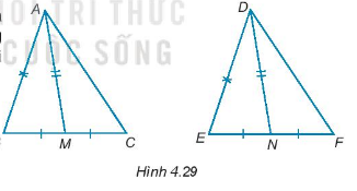Gọi M, N lần lượt là trung điểm các đoạn thẳng cạnh BC và EF của hai tam giác ABC và DEF. Giả sử rằng AB = DE, BC = EF, AM = DN (H.4.29). Chứng minh rằng