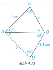 Cho Hình 4.73. Hãy tính các độ dài a, b và số đo x, y của các góc trên hình vẽ.