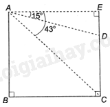 Cho hai tòa nhà cách nhau 32m. Tại điểm A trên nóc tòa nhà cao nhìn xuống nóc D và chân C của tòa nhà thấp lần lượt theo các góc ({15^o}) và ({43^o}) (so với phương nằm ngang) (H.4.16). Tính chiều cao của hai tòa nhà đó (làm tròn đến m).