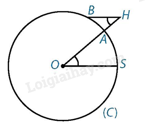 + Vì đường thẳng vuông góc mặt đất thì đi qua tâm O nên theo giả thiết, tia sáng mặt trời song song với OS, do đó BH song song với OS, suy ra \(\widehat {AHB} = \widehat {AOS}\).