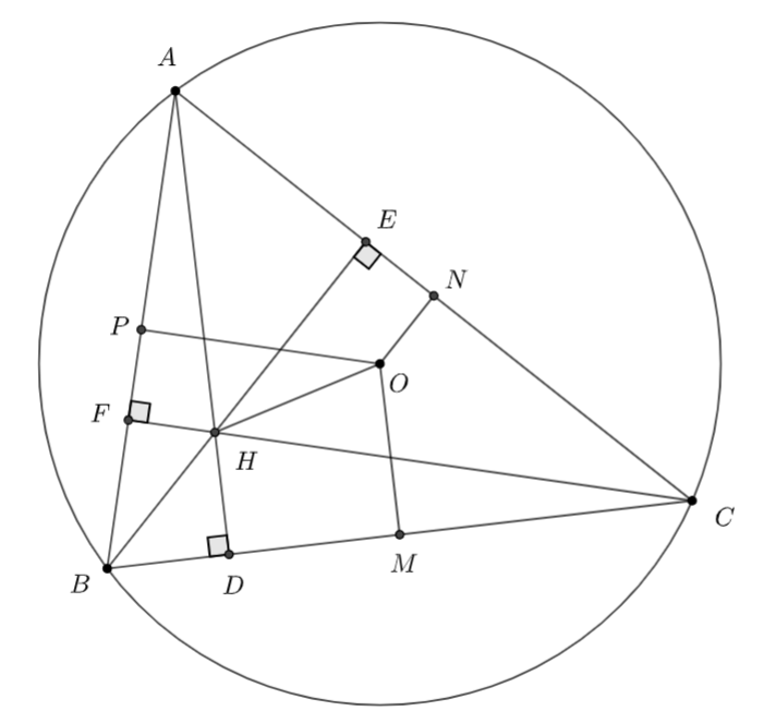 Gọi \(H\) là trực tâm và \(O\) là tâm đường tròn ngoại tiếp \(\Delta ABC\)