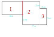 Hình 1 là hình chữ nhật có chiều dài là 6 m, chiều rộng là 4 m nên diện tích hình 1 là: 6.4 = 24 (m2)