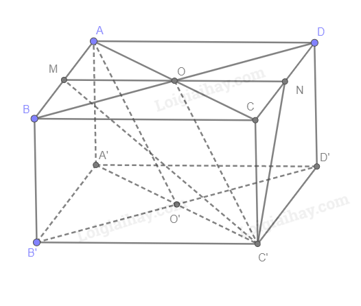 Cho hình hộp ABCD.A'B'C'D'. Gọi \(O = AC \cap BD\) và \(O' = A'C' \cap B'D'\). Gọi M, N lần lượt là trung điểm của AB và CD.