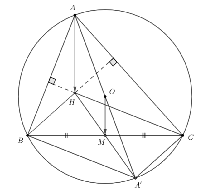 - Chứng minh \(MO\) là đường trung bình của \(\Delta AA'H\).