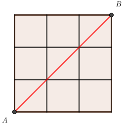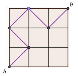Quan sát hình dưới đây và chỉ ra ít nhất hai cách, để một con kiến bò từ A đến B theo đường chéo của các hình vuông nhỏ?