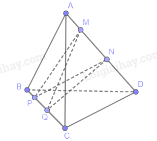 Cho tứ diện ABCD. Gọi M, N là hai điểm phân biệt cùng thuộc đường thẳng AD và P, Q là hai điểm phân biệt cùng thuộc đường thẳng BC. Xét vị trí tương đối của hai đường thẳng MQ, NP và vị trí tương đối của hai đường thẳng MP, NQ.