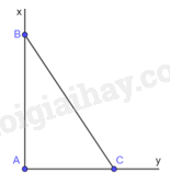 + Vẽ góc vuông xAy, lấy điểm B thuộc tia Ax sao cho \(AB = 2cm\).
