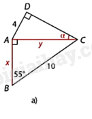\(y = BC.\sin B = 10\sin {55^o} \approx 8,2;x = BC.\cos B = 10\cos {55^o} \approx 5,7\)