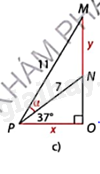 \(\Delta \)ONP vuông tại O nên \(x = PN.\cos NPO = 7.\cos {37^o} \approx 5,6\), \(NO = PN.\sin NPO = 7.\sin {37^o} \approx 4,2\).